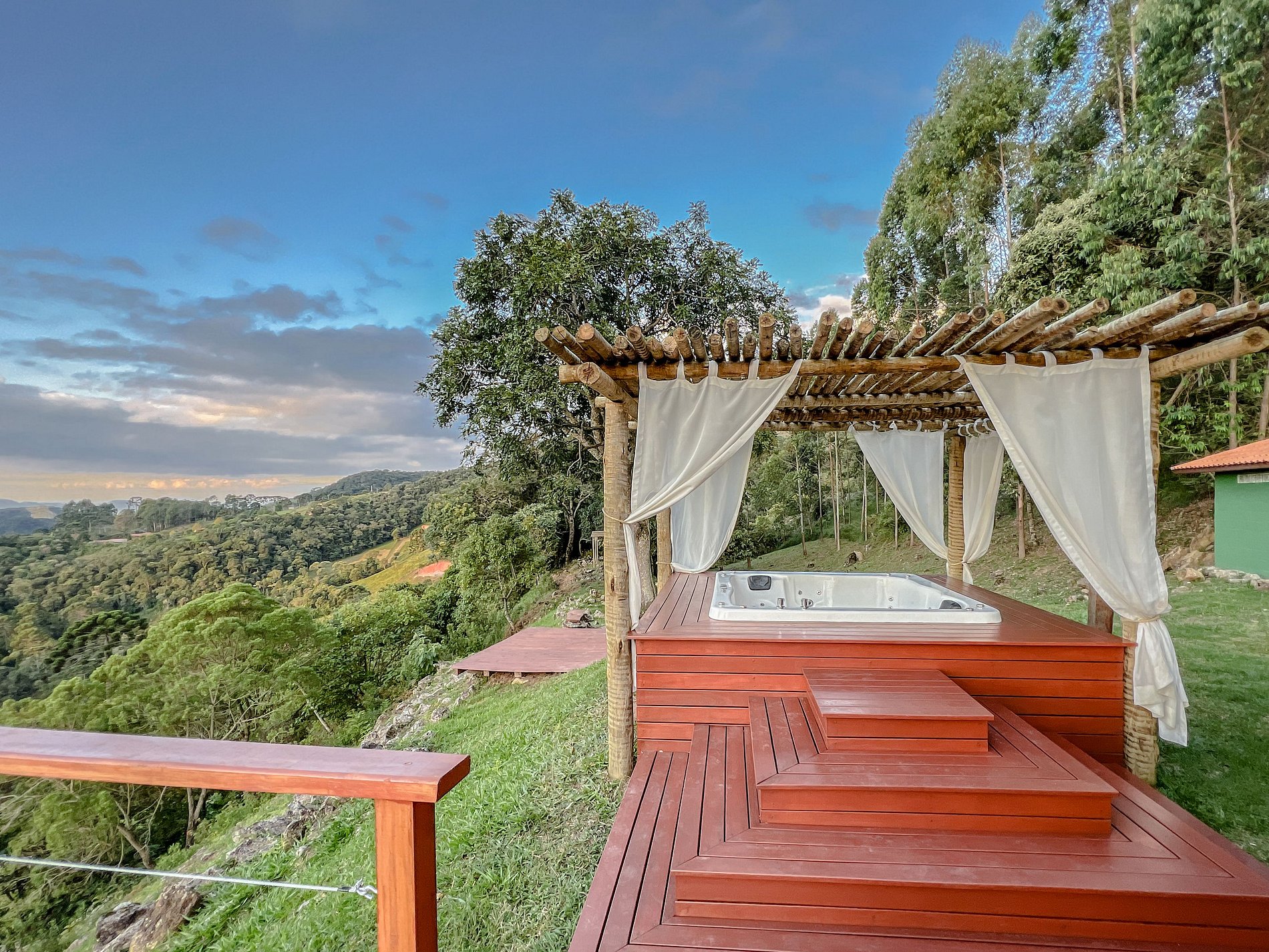 Nossa propriedade de mais de 20.000 m² de área propiciando o contato e conexão com a natureza. Possuímos uma banheira de hidromassagem SPA com uma vista incrível, e uma lareira a gás, para que nossos hóspedes possam relaxar e aproveitar ao máximo a hospedagem. Roupas de cama de alto padrão Trousseau em algodão egípcio de 400 fios, toalhas de banho Trousseau em algodão egípcio e travesseiros de plumas de ganso. Wi-fi, Banheira de hidromassagem SPA (4 pessoas), fogão a lenha, aquecedor a óleo, Nespresso e adega climatizada.